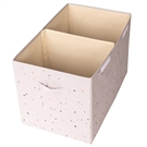Pudełko zamykane na zabawki to wygodny pojemnik do przechowywania akcesoriów w dziecięcym pokoju. Wyjmowany separator umożliwia stworzenie dwóch przegródek o dowolnej wielkości. Pojemna skrzynia pomieści wiele dziecięcych gadżetów. Pudełko doskonale sprawdzi się do przechowywania książek, zabawek, a także bielizny czy ubrań sezonowych, a pokrywa pomoże ukryć wszystkie te akcesoria w jego wnętrzu. Boki, pokrywa oraz spód pudełka zostały wzmocnione grubą tekturą, dzięki czemu pudełko na zabawki stabilnie stoi i pięknie się prezentuje nawet gdy jest puste.