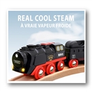 "Cała naprzód!". Poruszaj się po torach BRIO World z realistycznymi efektami pary wydobywającej się z komina pociągu.