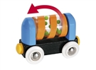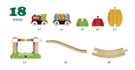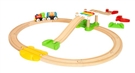 Zestaw zawiera: 1x pociąg, 1x grzechotka, 11x drewniany tor, 4x tory prowadzące, 1x kolorowy most / tunel.