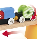 Tyle radości na raz dla najmłodszych maszynistów! Zacznij od zbudowania układu torów z górami i tunelem, a następnie pozwól pociągowi jeździć w górę iw dół oraz przez tunel. Naciśnij przycisk ze strzałką w górnej części lokomotywy, a pociąg ruszy sam. Wagon z kołowrotkiem sprawia, że oglądanie przejeżdżającego pociągu jest wyjątkowo przyjemne. Gdy pociąg zacznie się poruszać, w wagonie będą migać światła. Bawić możesz się w ciemnym pokoju, aby stworzyć tajemniczy nocny pociąg.