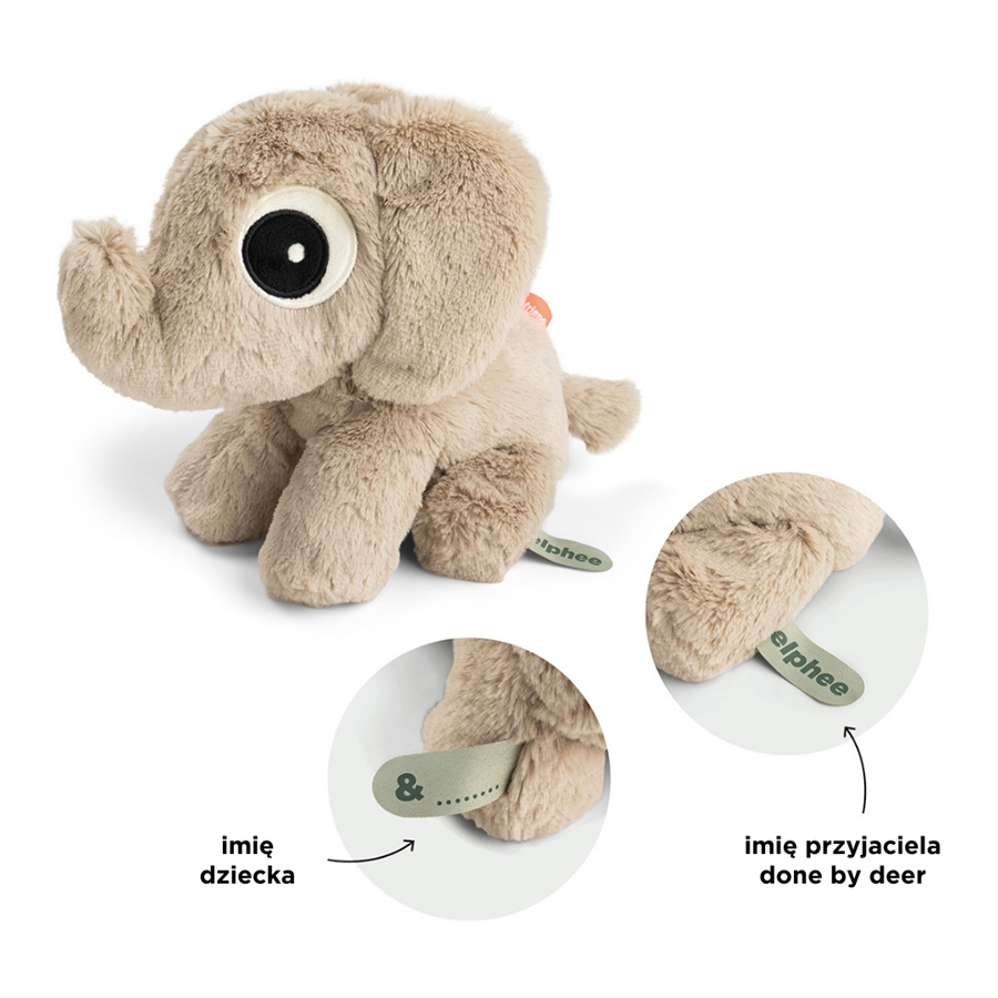 Poznaj Słonika Elphee, wyjątkowo miękką przytulankę, stworzoną, by towarzyszyć maluchowi w codziennych chwilach bliskości, wyciszenia i małych odkryć. Ten uroczy słonik Done by Deer szybko stanie się pierwszym najlepszym przyjacielem dziecka, dając mu poczucie bezpieczeństwa już od pierwszych dni życia.