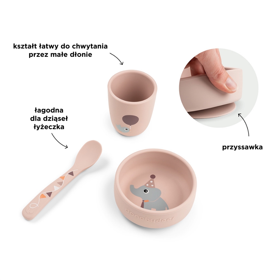 Done by Deer Silikonowy Zestaw Obiadowy Celebration Powder 3 szt.