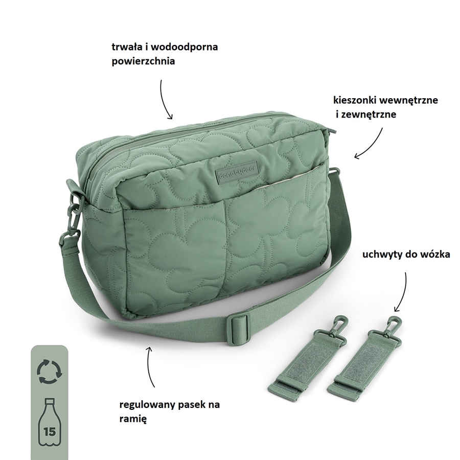 Wykonana z wodoodpornego materiału pochodzącego z recyklingu, ta torba do wózka jest gotowa na wszystkie Twoje przygody na świeżym powietrzu, zapewniając bezpieczeństwo i suchość Twojego sprzętu. Lekka, elegancka i stylowa w pięknym zielonym kolorze z motywem koniczynek.