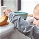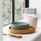 Silikonowy talerzyk i miseczka posiadają specjalną przyssawkę, która sprawia, że pozostają nieruchome, pomagając tym samym maluchom opanować umiejętność samodzielnego spożywania posiłku. Rodzic z łatwością może odczepić przyssawkę od stołu za pomocą małego uchwytu niewidocznego dla dziecka. Talerzy i miseczka posiadają zaokrąglone wewnętrzne krawędzie, które ułatwiają dziecku samodzielne nabieranie jedzenia.