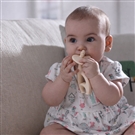 Miękki gryzak silikonowy z delikatnymi wypustkami pomaga łagodzić ból podczas ząbkowania, a ergonomiczny kształt ułatwia maluchowi samodzielne chwytanie i wkładanie gryzaka do buzi.