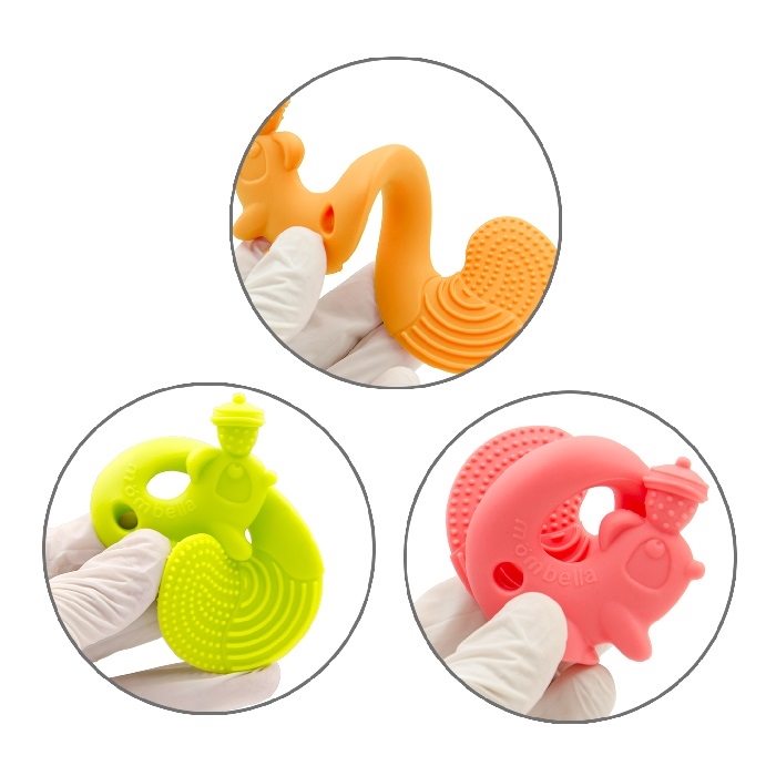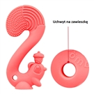 Miękki gryzak wiewiórka w kształcie literki "S" został zaprojektowany z myślą o najmłodszych dzieciach. Różnorodne struktury gryzaka masują delikatne dziąsełka i łagodzą ból podczas ząbkowania. Odpowiedni kształt i rozmiar umożliwają dziecku łatwe chwytanie. Może być również stosowany do podawania np. kaszek i przecierów. Kształt wiewiórki i jej kolorystyka zachęcą Malucha do zabawy. Jest bezpieczny i łatwy w gryzieniu nawet po ochłodzeniu. Można używać go w zmywarce, mikrofalówce, a także zamrażarce.
