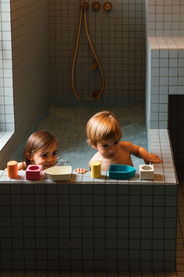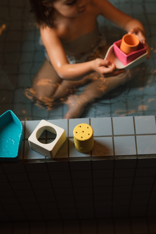Zabawka do kąpieli i klocki do układania Oli&Carol. To aż 3 elementy w jednym! W dodatku wykonane w sposób zrównoważony dla środowiska poprzez recykling własnych resztek i nadanie drugiego życia produkcyjnym odpadkom.