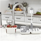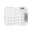 Przenośny zestaw do szybkiego mycia i suszenia OXO Tot, idealnie sprawdzi się podczas podróży. Kompaktowy, niewielkich rozmiarów zestaw do czyszczenia z pewnością zmieścić się w torbie na pieluchy. Pojemnik i jednocześnie suszarka posiada elastyczne wypustki które pomieszczą butelki, smoczki, i inne małe akcesoria. W zestawie z suszarką znajduje się składana szczotka z miękkim włosiem dla delikatnego czyszczenia lub szorowania oraz miękki antypoślizgowy uchwyt. Dodatkową zaletą szczotki jest silikonowy środek na uchwycie rączki, którym można wyczyścić detale trudno dostępne. Pojemnik posiada specjalne miejsce na umieszczenie szczoteczki. Otwory wentylacyjne umożliwiają szybkie suszenie. Zajmuje niewiele miejsca, można ustawić ją na parapecie czy blacie kuchennym. Łatwa do utrzymywania czystości.