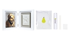- dwudzielna drewniana ramka ze szklaną szybą, bejcowana w bogatym białym wykończeniu