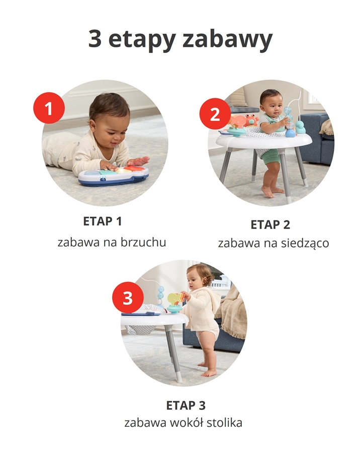 Etap 1 (4-12 m): zabawa wewnątrz stolika na siedząco,