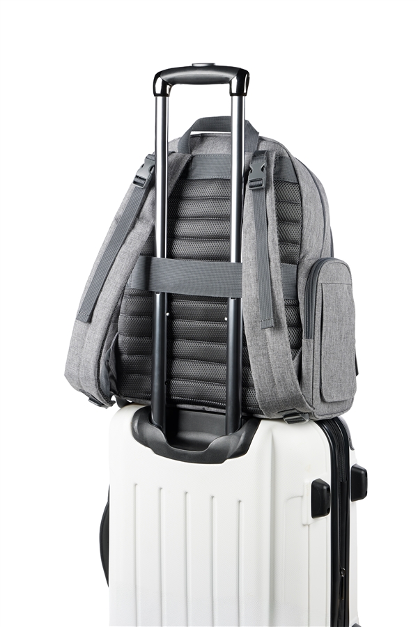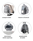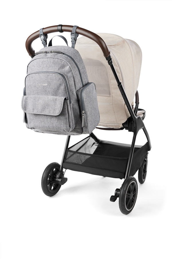 Dzięki 9 funkcjonalnym kieszeniom bez problemu uporządkujesz pieluszki, chusteczki, butelki czy przekąski. Plecak posiada także kieszeń na chusteczki nawilżane, uchwyty do wózka oraz pasek do mocowania na walizce, co sprawia, że świetnie sprawdzi się również w podróży.