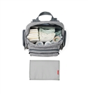 W zestawie znajduje się miękka, łatwa do czyszczenia mata do przewijania, a ergonomiczny tył z siateczki zapewnia komfort noszenia przez cały dzień. Uniwersalny design sprawia, że plecak jest idealny zarówno dla mamy, jak i taty także po okresie niemowlęcym, ponieważ mieści laptop do 15 cali.