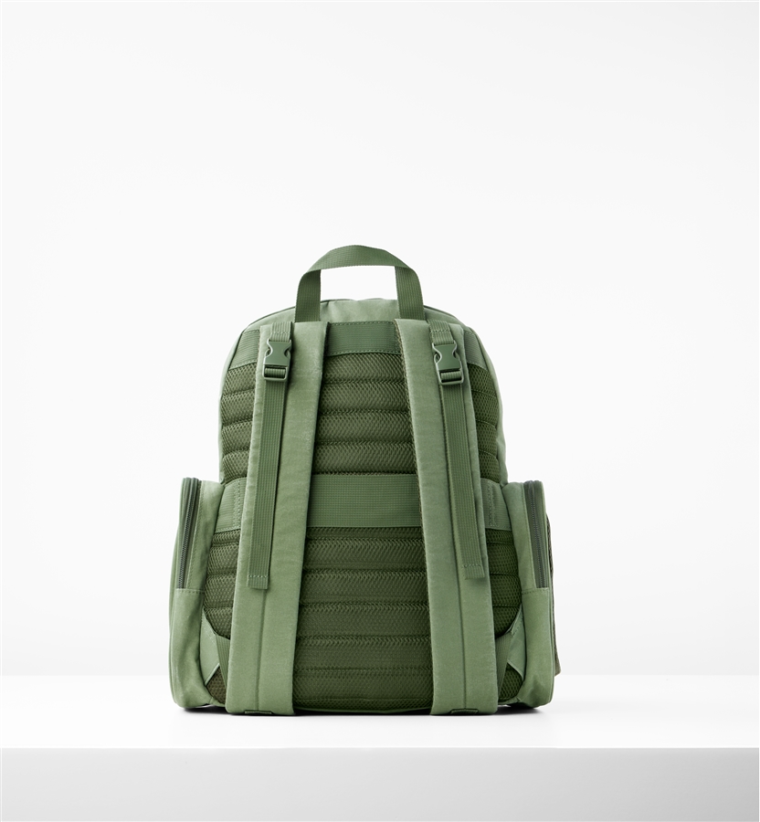W zestawie znajduje się miękka, łatwa do czyszczenia mata do przewijania, a ergonomiczny tył z siateczki zapewnia komfort noszenia przez cały dzień. Uniwersalny design sprawia, że plecak jest idealny zarówno dla mamy, jak i taty także po okresie niemowlęcym, ponieważ mieści laptop do 15 cali.