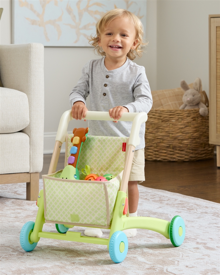 Interaktywny chodzik dla dziecka 5 w 1 z kolekcji Farmstand rośnie razem z maluchem i oferuje aż 5 sposobów zabawy: na siedząco, jako pchacz do nauki chodzenia, wózek zakupowy, spacerówkę dla zabawek oraz zabawę w sklep. Dzięki ponad 50 funkcjom – piosenkom, dźwiękom i światełkom zabawka angażuje dziecko i wspiera jego rozwój na wielu etapach.