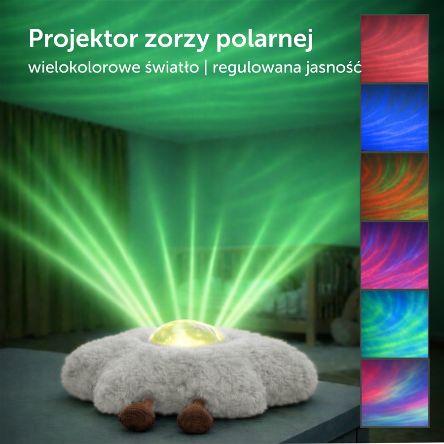 Wyobraź sobie spokojny wieczór, gdy gasną światła, a na ścianach i suficie zaczynają tańczyć delikatne barwy przypominające północne niebo. Projektor zorzy polarnej Zazu GAIA tworzy immersyjne widowisko świetlne, które uspokaja zmysły i pomaga dziecku przejść z trybu zabawy w tryb snu. To idealne wsparcie dla dzieci, które mają trudności z wyciszeniem się przed snem lub boją się ciemności.